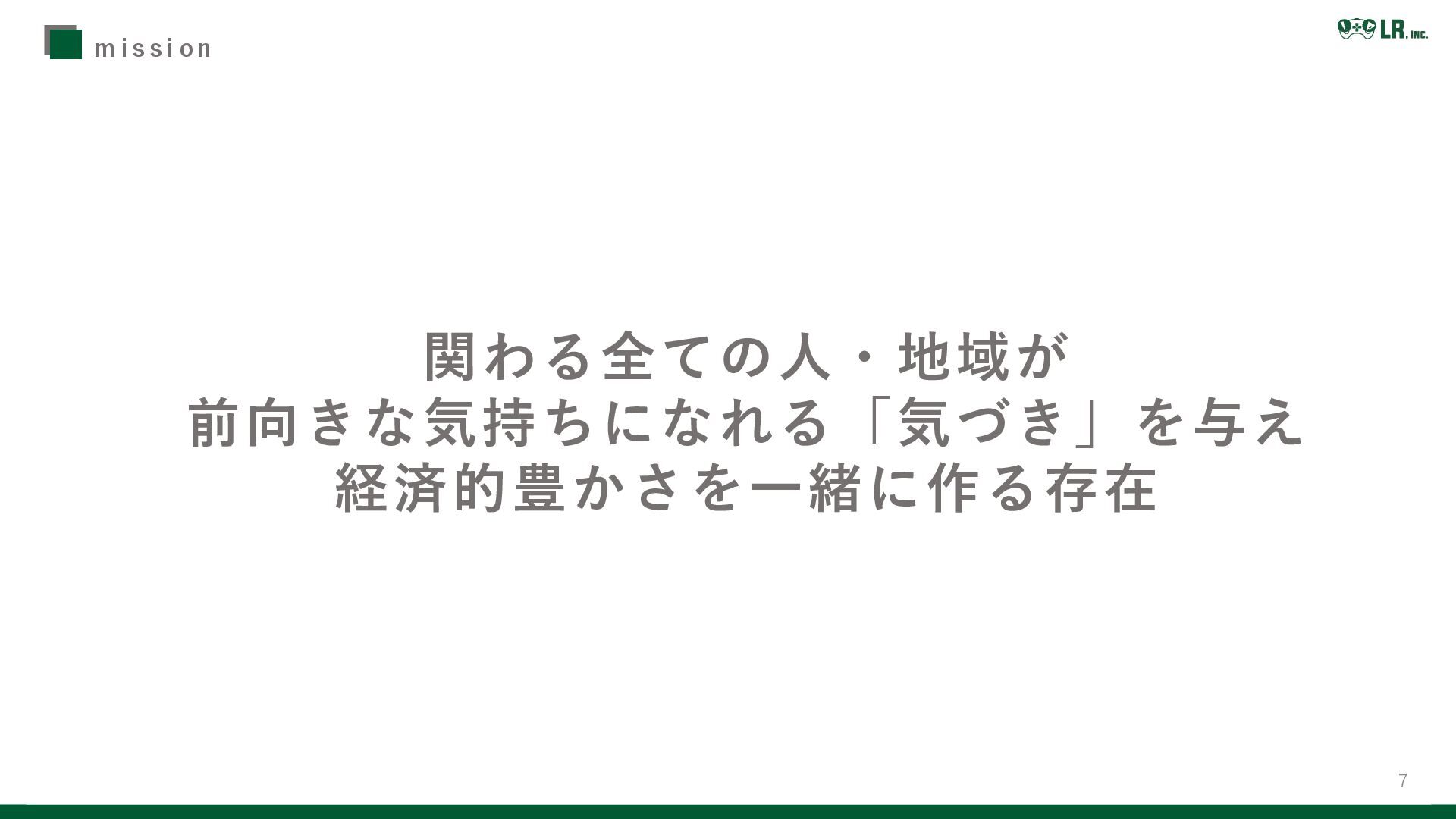 7 関わる全ての人・地域が 前向きな気持ちになれる「気づき」を与え 経済的豊かさを一緒に作る存在 m i s s i o
