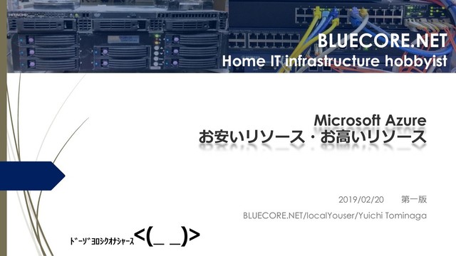 BLUECORE.NET Home IT infrastructure hobbyist Microsoft Azure お安いリソース・お高いリソース 2019/02/20 第一版