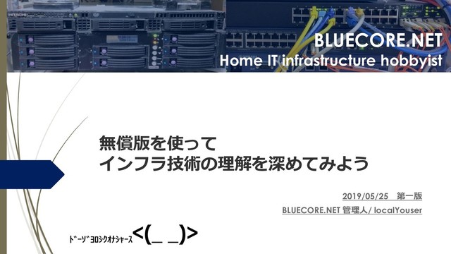BLUECORE.NET Home IT infrastructure hobbyist 無償版を使って インフラ技術の理解を深めてみよう 2019/05/25 第一版 BLUECORE.NET
