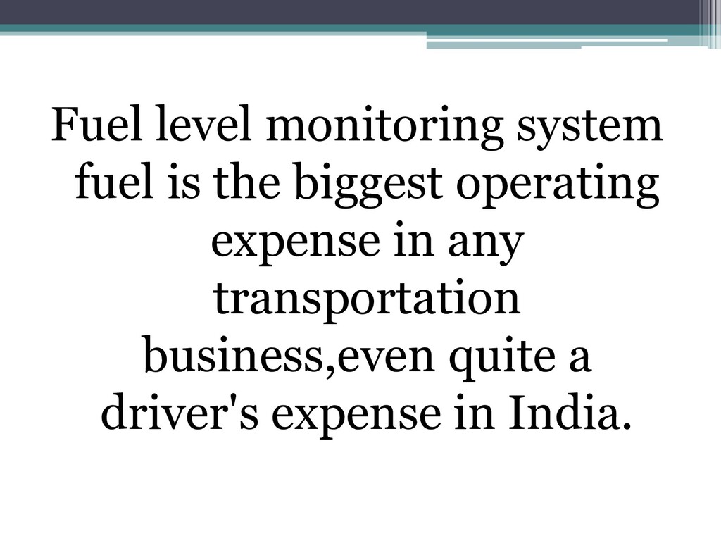Fuel level monitoring system fuel is the biggest operating expense in any transportation business, even quite a driver's expense in India.