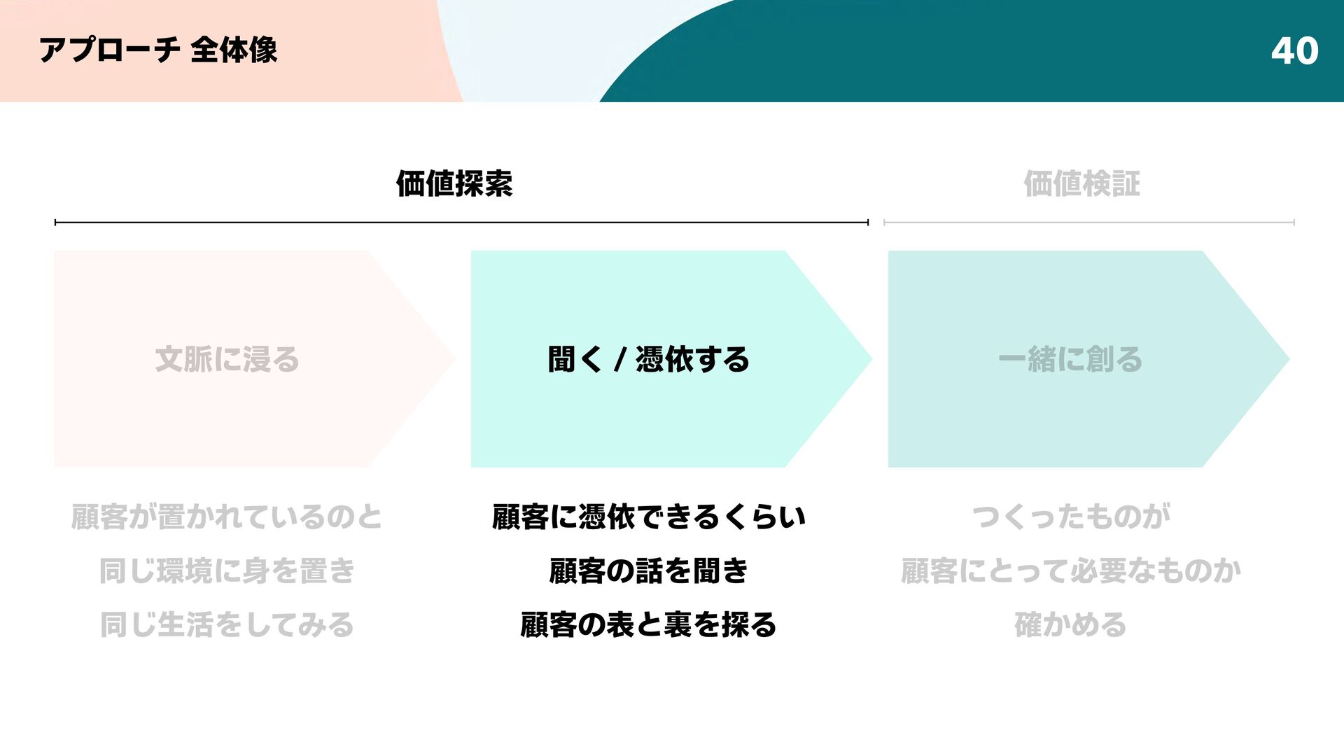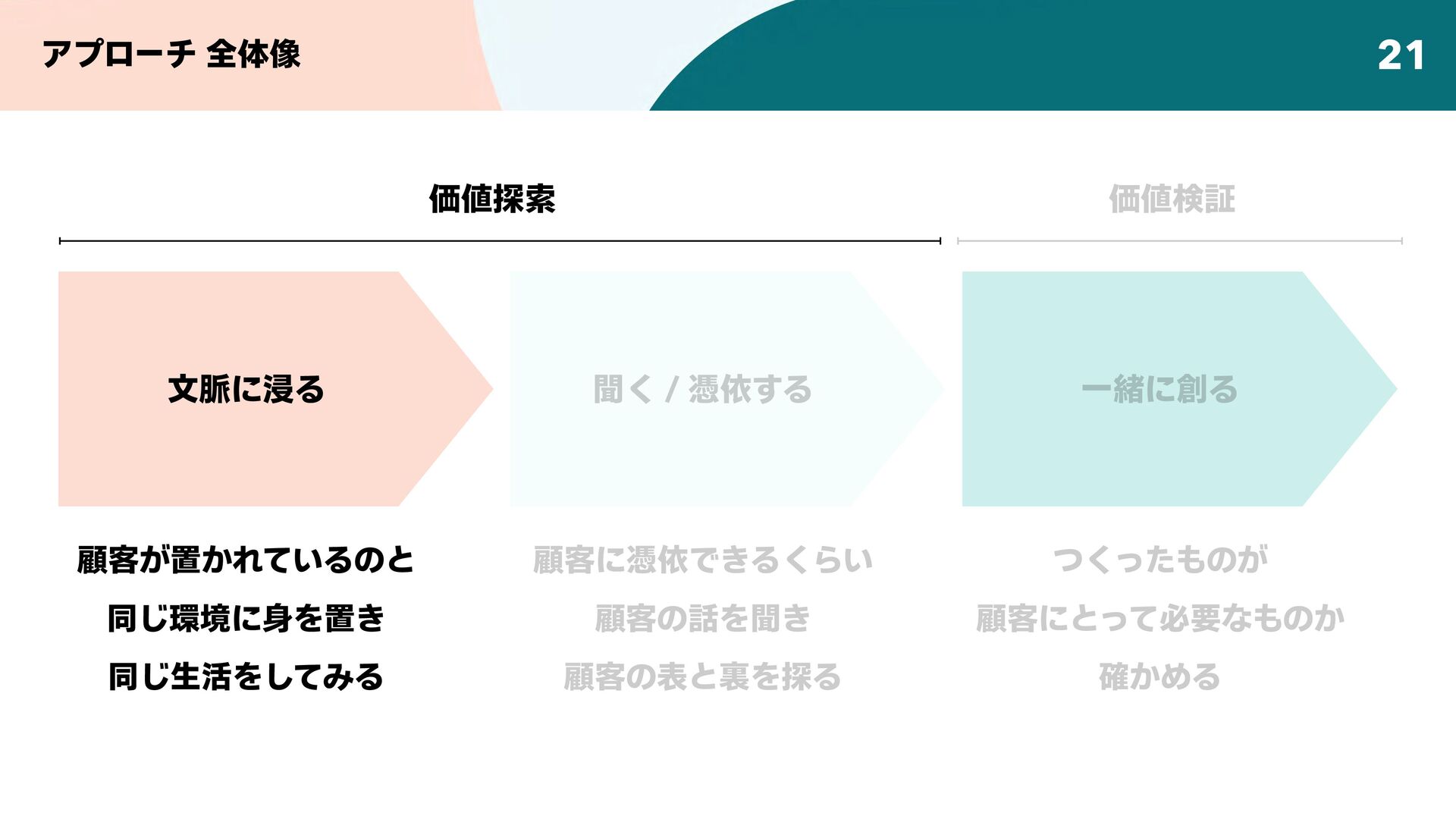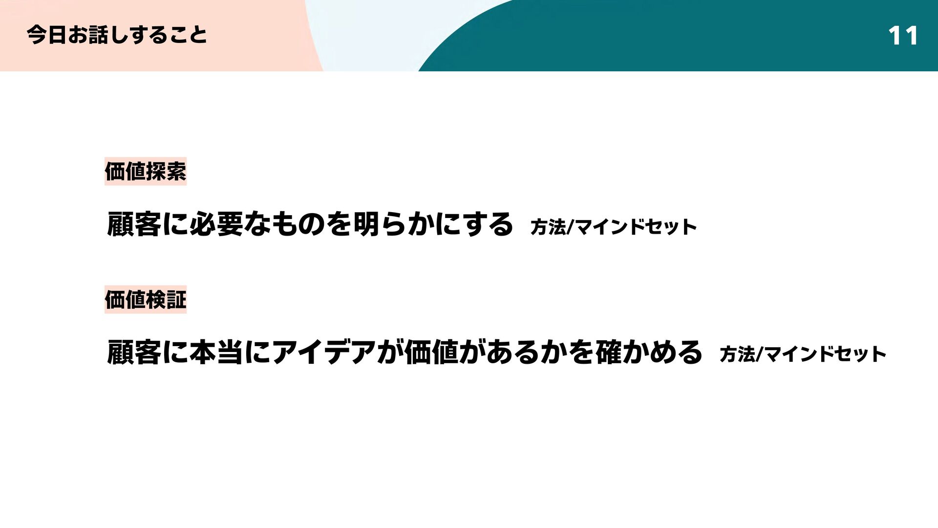 顧客に必要なものを明らかにする「価値探索」と、顧客にとって本当にそのアイデアに価値があるかどうかを確かめる「価値検証」の手法とマインドセットについて、解説します。