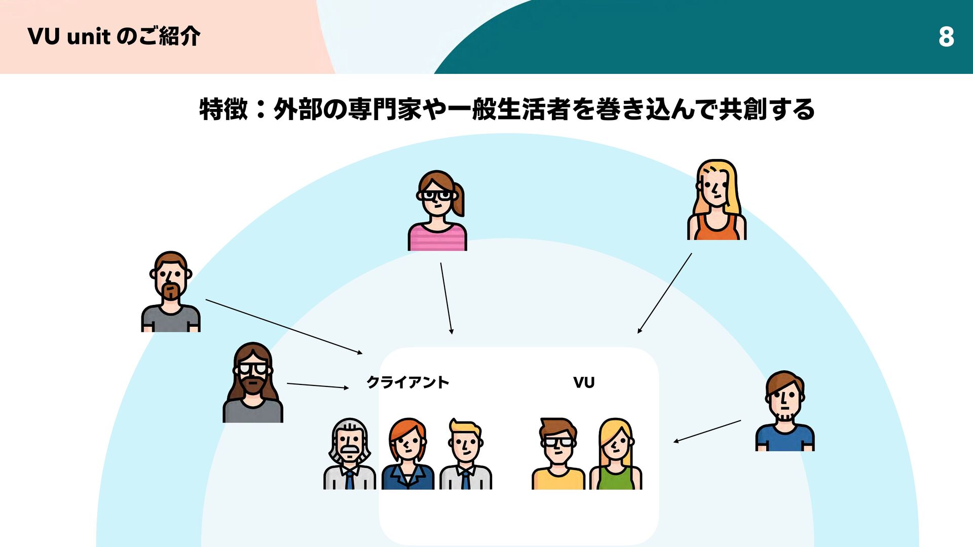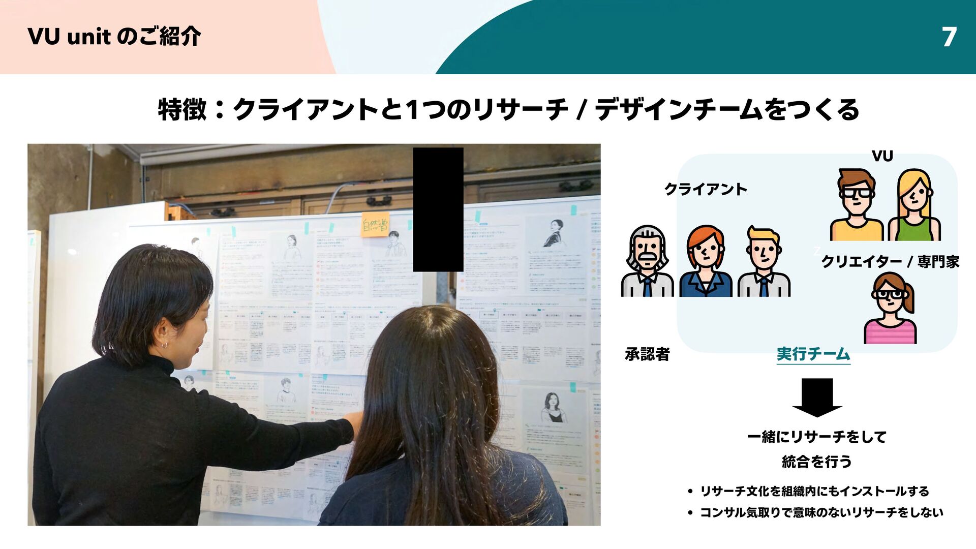 デザインリサーチを用いて、企業の持つビジョン / アセット / 技術を起点に、新たな顧客や市場との出会いをつくることで、企業や組織のイノベーション創出を支援する。