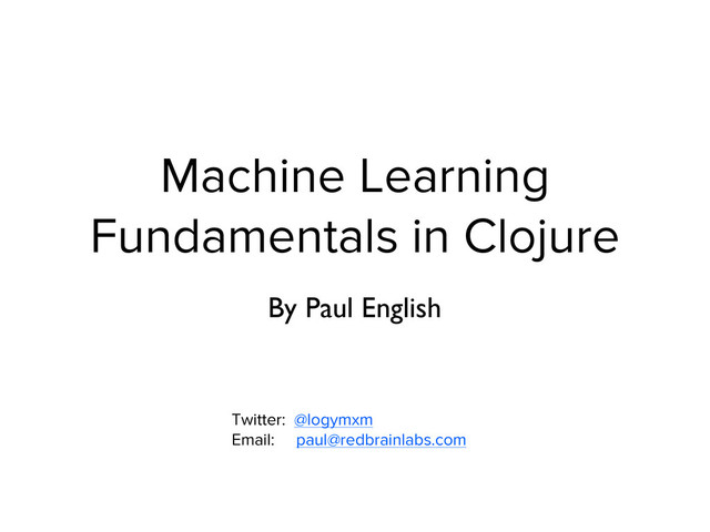 bald mathematicians; and an analytics guy • Clojure (Ruby, Python, Node.js, R, C#, whatever works best or is needed) • Predictive Analytics (Automated Decisions, Machine Learning, Visualizations & Intelligence) • Math Mornings (Stochastic Calculus For Finance; Friends of Red Brain Labs)