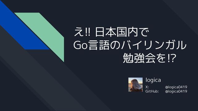 logica X: @logica0419 GitHub: @logica0419 え!! 日本国内で Go言語のバイリンガル 勉強会を!?