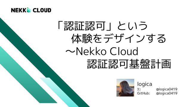 「認証認可」という 体験をデザインする ~Nekko Cloud 認証認可基盤計画 logica 𝕏: @logica0419 GitHub: @logica0419
