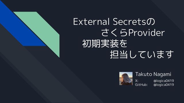Takuto Nagami X: @logica0419 GitHub: @logica0419 External Secretsの さくらProvider 初期実装を