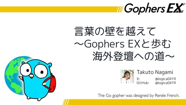 Takuto Nagami X: @logica0419 GitHub: @logica0419 言葉の壁を越えて ~Gophers EXと歩む 海外登壇への道~