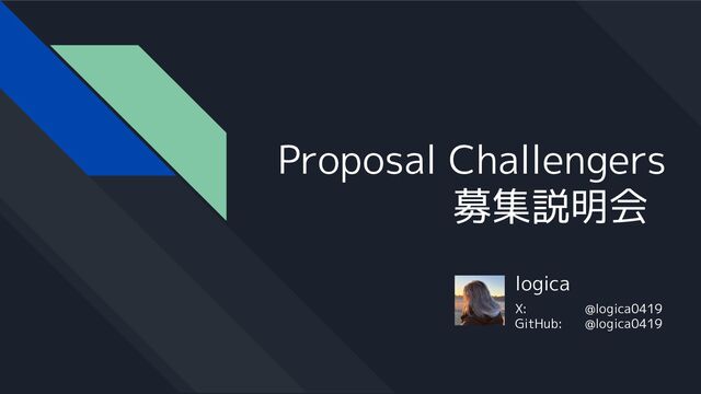 logica X: @logica0419 GitHub: @logica0419 Proposal Challengers 募集説明会