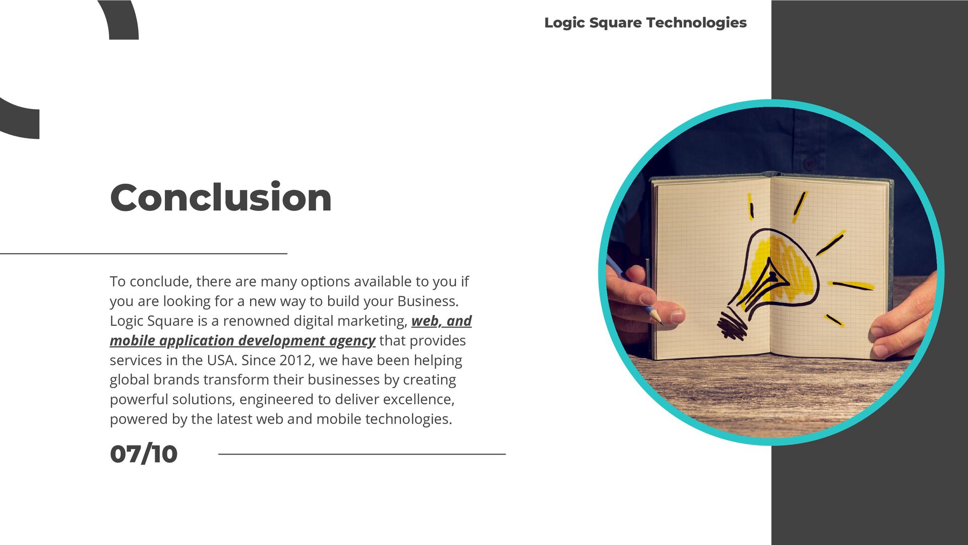 if you are looking for a new way to build your Business. Logic Square is a renowned digital marketing, web, and mobile application development agency that provides services in the USA. Since 2012, we have been helping global brands transform their businesses by creating powerful solutions, engineered to deliver excellence, powered by the latest web and mobile technologies. Logic Square Technologies 07/10
