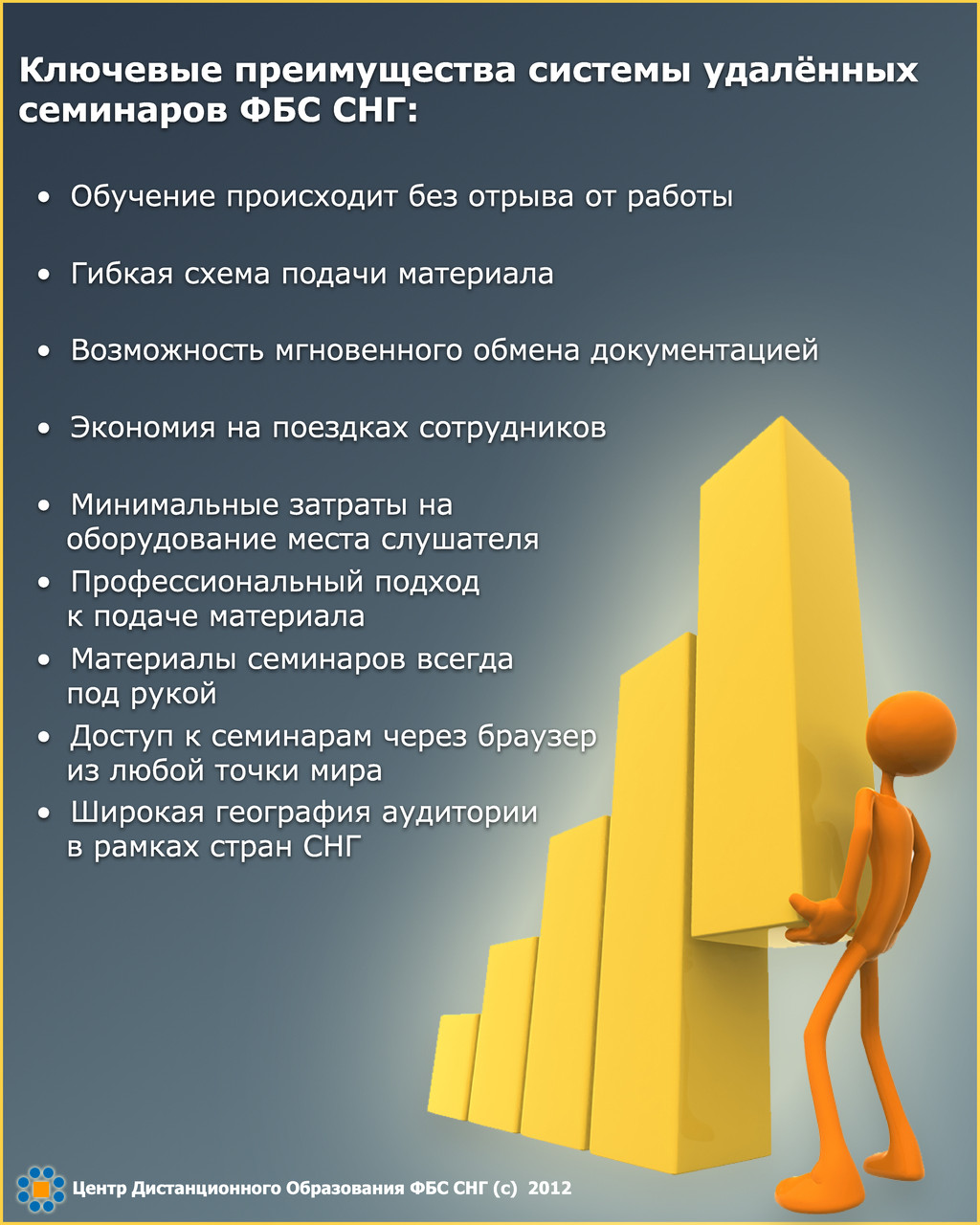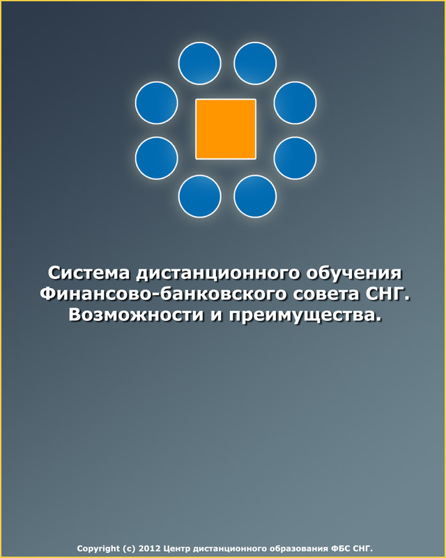 а н ц и о н н о г о о б у ч е н и я Фи н а н с о в о - б а н к о в с к о г о с о в е т а С НГ . В о з мо жн о с т и и п р е и му ще с т в а . C o p y r i g h t ( c ) 2 0 1 2 Це н т р д и с т а н ц и о н н о г о о б р а з о в а н и я ФБ С С НГ .
