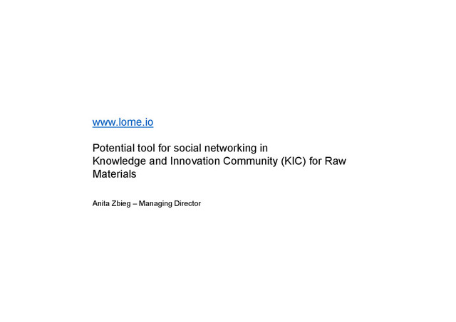 cross-competence, cross- sectorial connections Linkages Facilitation of establishing new connections Network structure Visualization of the network structure and blockades in collaboration 18 Analytics Advanced network analytics and reporting sectorial connections Key actors Leveraging potential of the most influential actors collaboration Self-coordination Each KIC member has view on the collaboration in the whole community