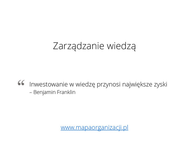 rocznie z powodu problemów z przepływem wiedzy pomiędzy pracownikami 1,2 [1] Lisa Quast. Why Knowledge Management Is Important To The Success Of Your Company. Forbes, June 2012. [2] Pamela Babcock. Shedding Light on Knowledge Management. HR Magazine, May 2004