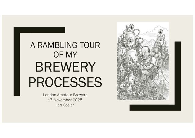 This month (November, 2025), Ian Cosier gave us an overview of his brewing process. We went very deep into many aspects of the recipe formulation and brewing process and had a great conversation about the hobby we love.