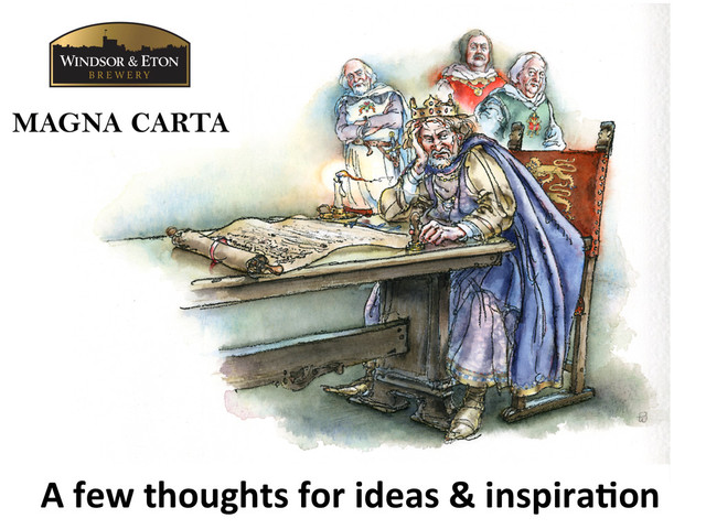 secured rights to use the name Magna Carta for beers • Year long celebra?ons will start later in 2014 • Runnymede memorial was a gii from the American Bar Associa?on • Coffee table book to be published later this year ‘Magna Carta – the founda?on of freedom 1215-‐ 2015’ • Last month the inventor of the world wide web said an online "Magna Carta" is needed to protect and enshrine the independence of the medium he created and the rights of its users worldwide. Now we want your help to create a beer to live up to the spirit of the Magna Carta