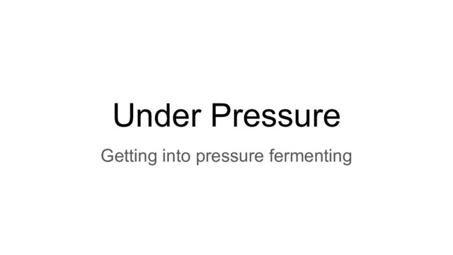 20°C @ 12-15 PSI • Reasoning: if 15 PSI produces a clean lager as at 10°C, then an increase in pressure of 1.5 PSI has the same effect as a drop of 1°C ◦ Note: temperature does not actually drop when pressure is increased! • So, for a pale ale, 3 PSI = drop of 2°C from 20°C to 18°C • For a saison, 3 PSI = drop of 2°C from 29°C to 27°C • Overbuild starters rather than repitch on previous yeast cake – investigating the effect of repeated pressure ferments on the same yeast cake • Pitch yeast as you normally would, eg, double sized lager pitch to compensate for suppressed yeast growth