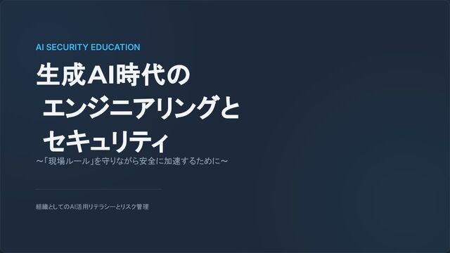 AI SECURITY EDUCATION 生成AI時代の エンジニアリングと セキュリティ ~「現場ルール」を守りながら安全に加速するために~ 組織としてのAI活用リテラシーとリスク管理