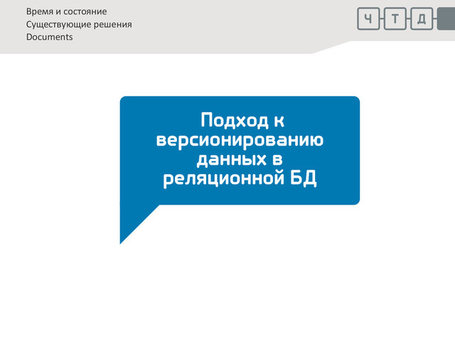 моделях Например, auth.models.User не версионируется, а Profile версионируется. Не версионируются редко меняющиеся данные. Плюсы: лучше совместимость со стандартными библиотеками, более привычная схема данных Минусы: половинчатое решение, все время нужно думать о версионировании и переключаться . . . 32