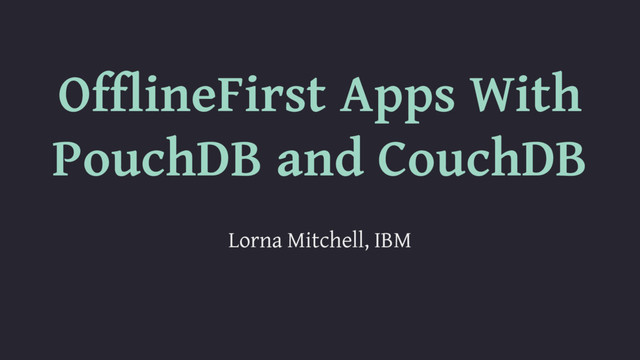 and PouchDB (a more detailed example) • Polymer and PouchDB • React and PouchDB • Vue.js and PouchDB • React Native and PouchDB https://github.com/ibm-watson-data-lab/shopping-list @lornajane