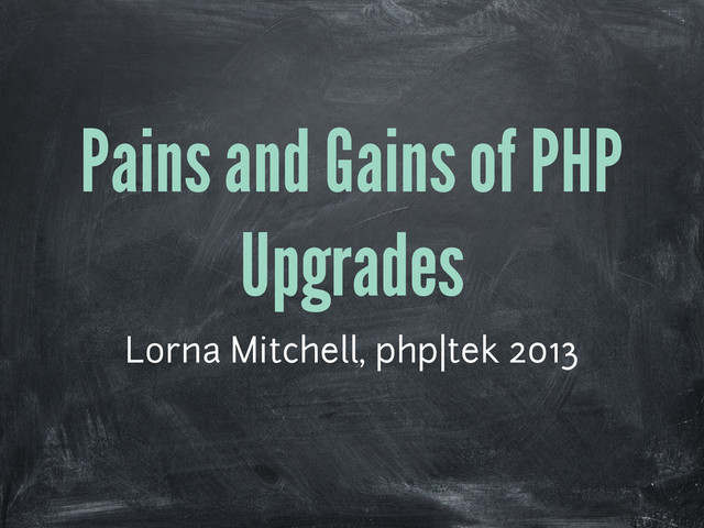Adoption of PHP does lag behind the release schedule by more years than it should, but upgrading your platform is wicked hard. This presentation mixes the pleasures of upgrading with the pains of doing so, by showing off new features in the last few versions of PHP and then talking about how to upgrade to that version without any mishaps. Presented at PHP tek 2013.