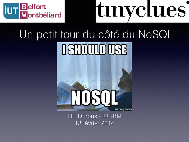 peuvent vous suffire, le NoSQL n’est pas une solution magique. • Dans le cas contraire, les bases NoSQL peuvent vous aider • Mais c’est un choix qui doit être bien réfléchi, RTFM !