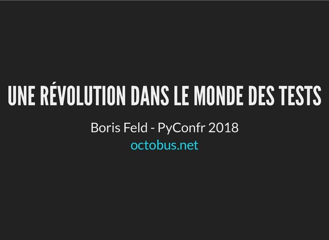 Comment améliorer la situation ? Je vous présenterai l'un de mes projets, LITF (https://github.com/Lothiraldan/litf) un nouveau format d'entrée et de sortie pour les librairies de test et BALTO (https://github.com/lothiraldan/balto), un orchestrateur de tests utilisant ce nouveau format. BALTO est écrit en Python 3.6 / Asyncio et supporte bien entendu Pytest comme première librairie compatible.