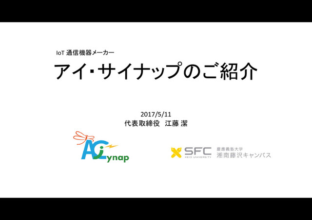 アイ・サイナップのご紹介 2017/5/11 代表取締役 江藤 潔 IoT 通信機器メーカー
