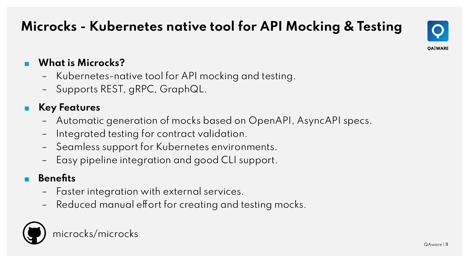 Microcks enables automated API mocking and testing in a Kubernetes-native environment, supporting various API standards such as REST, gRPC, and GraphQL. Keptn provides event-driven orchestration for testing and QA, ensuring smooth API deployments. Testkube provides a flexible test execution environment for Kubernetes, allowing API tests to be triggered based on events. We will demonstrate how these tools accelerate API development, increase cloud-native software delivery agility, and ensure robust, standards-compliant, and well-tested APIs.