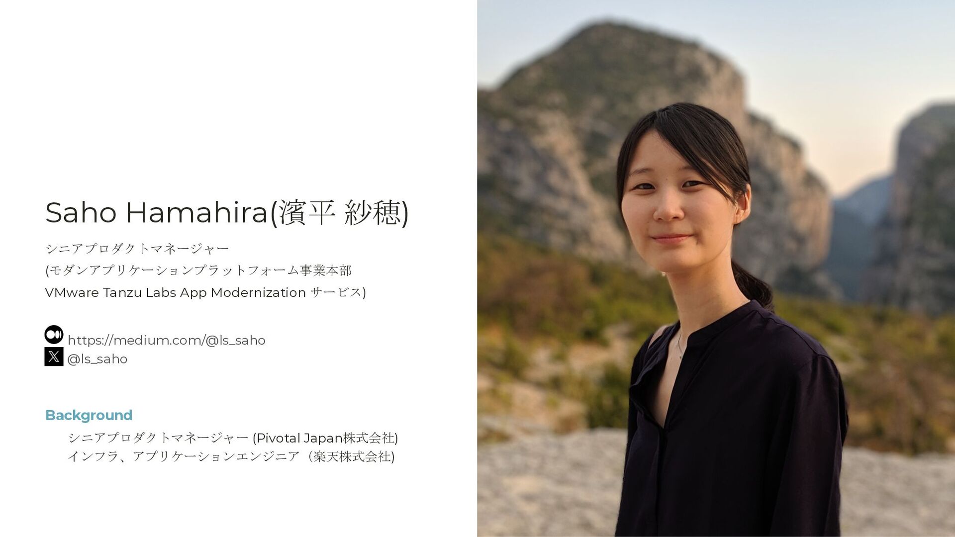 Saho Hamahira(濱平 紗穂) シニアプロダクトマネージャー (モダンアプリケーションプラットフォーム事業本部 VMware Tanzu Labs App Modernization