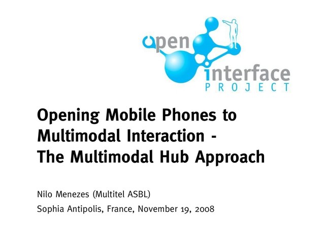 validate Multimodal components in mobile phones • Our existing solution, the OpenInterface Kernel was not able to run or even to be ported to mobile phones • A first intermediary solution was built, but it still need a link to a computer