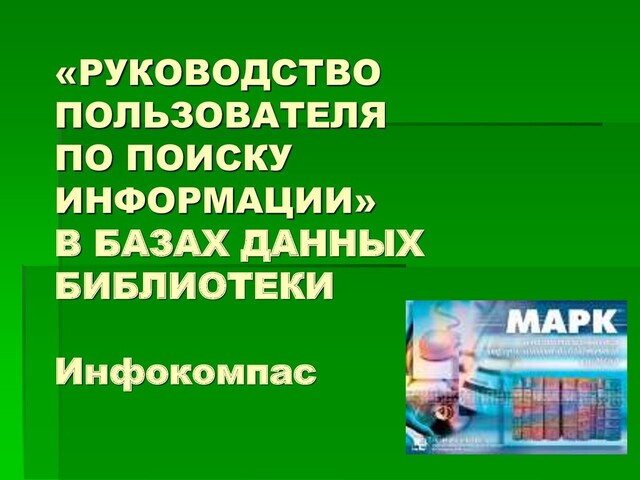 или запроса, которое несет в нем существенную смысловую нагрузку. Терм - слово или словосочетание, необходимое для поиска. Электронная картотека статей – база данных, которая содержит библиографическую информацию о статьях из журналов, газет, сборников. Электронный каталог – база данных, которая содержит полный перечень библиографических описаний книг библиотеки (всех или поступивших со времени начала ведения электронного каталога).