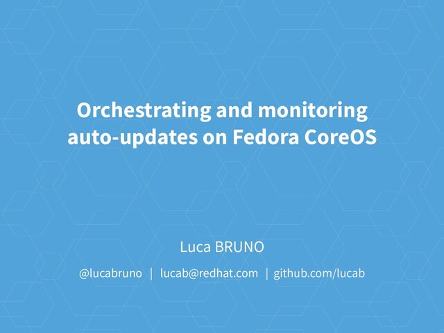 This talk describes Fedora CoreOS approach to orchestrating and monitoring auto-updates for a cluster of Linux machines. In particular it covers the auto-updates protocol (Cincinnati), the OS agent and client-side logic (Zincati), cluster-wide orchestration (Airlock), and overall observability from a single-pane of glass (with Prometheus metrics).
