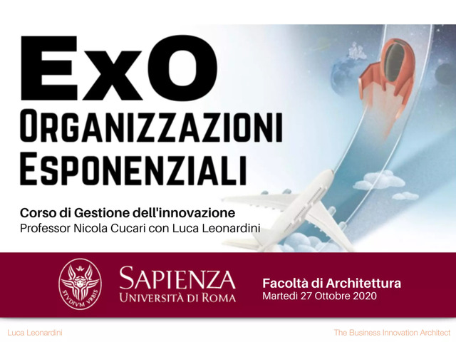 La presentazione online che ho avuto il piacere di fare oggi agli studenti della Facoltà di Architettura dell'Università della Sapienza di Roma iscritti al corso di Gestione dell'Innovazione del Prof. Nicola Cucari.