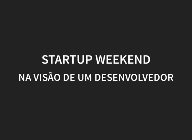 Palestra realizada durante o 7º Software Development RO, onde meu obetivo era compartilhar minhas experiências obtidas durante o 1º Startup Weekend que aconteceu em Porto Velho.