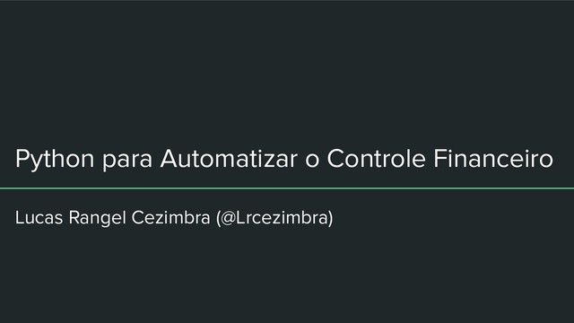 Python para Automatizar o Controle Financeiro Lucas Rangel Cezimbra (@Lrcezimbra)