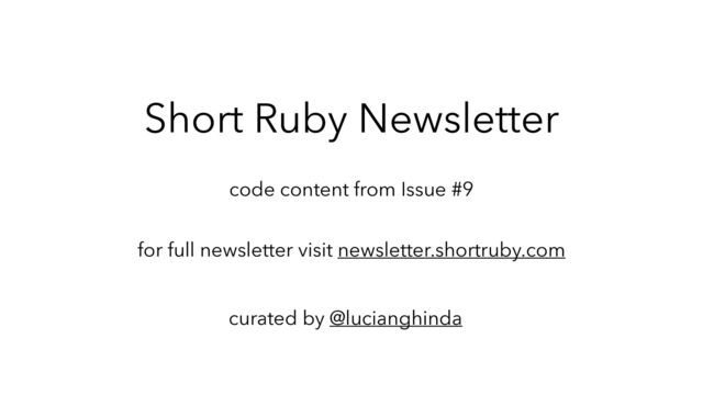This presentation contains code samples from Short Ruby Newsletter - issue #9