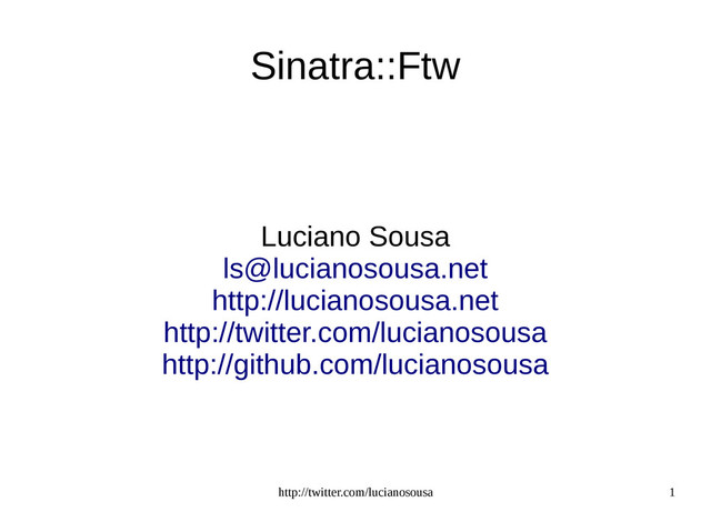 http://twitter.com/lucianosousa 1 Sinatra::Ftw Luciano Sousa