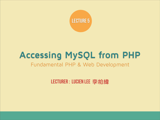 Accessing MySQL from PHP Fundamental PHP & Web Development lecturer
