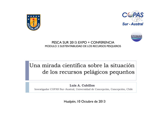pequeños Luis A. Cubillos Investigador COPAS Sur-Austral, Universidad de Concepción, Concepción, Chile Hualpén, 10 Octubre de 2013 PESCA SUR 2013: EXPO + CONFERENCIA MODULO 3: SUSTENTABILIDAD DE LOS RECURSOS PESQUEROS