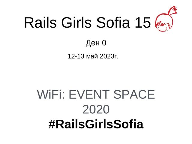 Rails Girls Sofia 15 12-13 май 2023г. Ден 0 WiFi:
