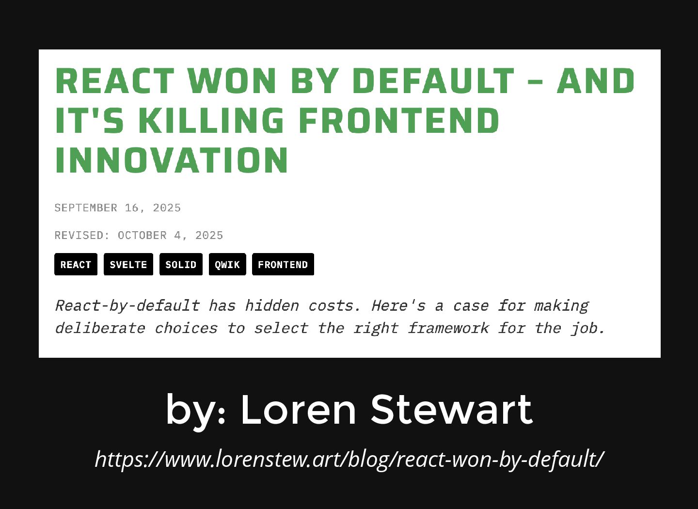React's reign over the frontend landscape is undeniable, but is it the only path to a great user experience? This talk cuts through the hype to offer a pragmatic look at the current state of frontend frameworks. We'll explore the real reasons behind React's dominance, then venture beyond to evaluate powerful alternatives like Svelte and Vue, comparing their developer experience and performance. Finally, we'll tackle the biggest shift in modern development: AI. Does it reinforce React's position, or does it level the playing field for its competitors? You'll leave with a clearer perspective on which tool is right for your next project in the age of AI.