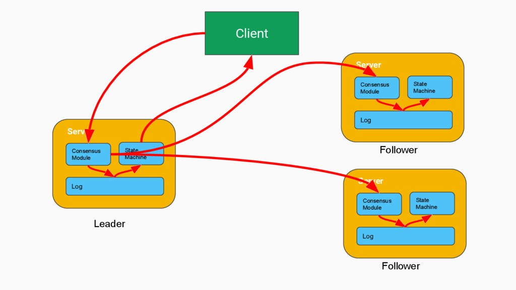 Machine Server Log Consensus Module State Machine Server Log Leader Follower Follower