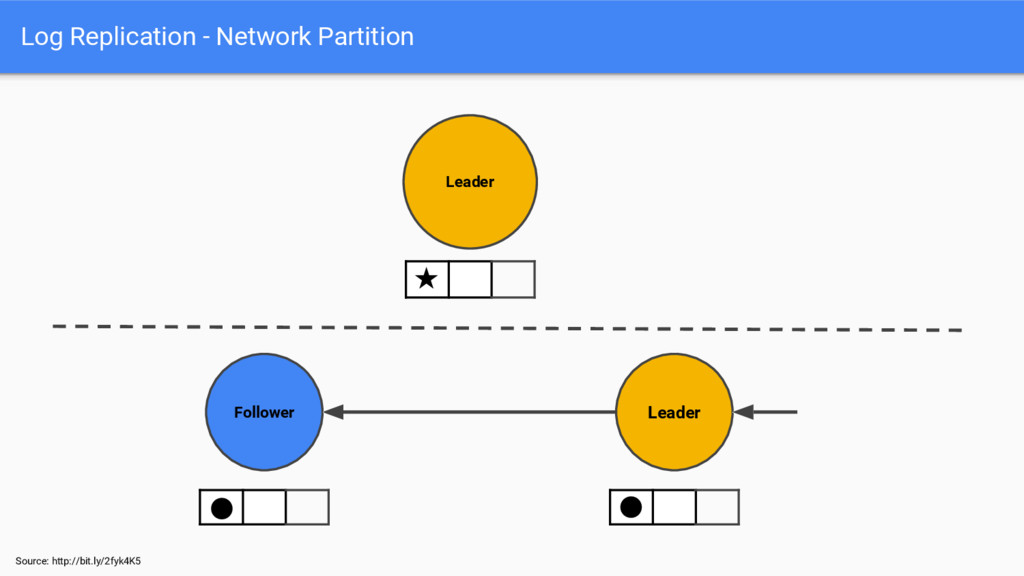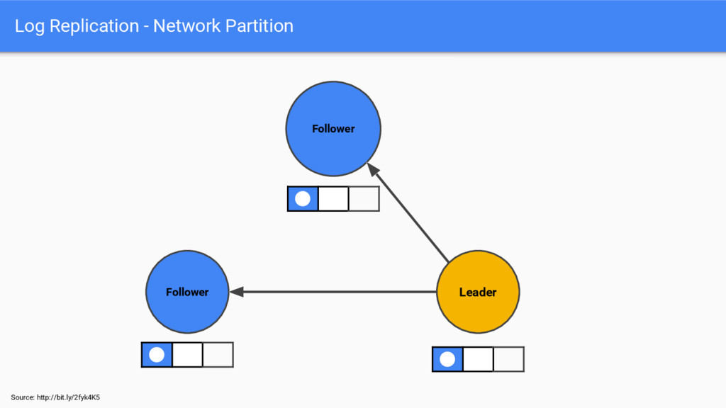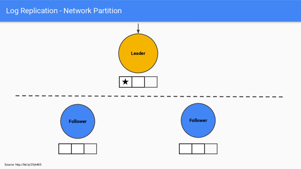 Source: http://bit.ly/2fyk4K5 Log Replication - Network Partition Follower Follower Leader