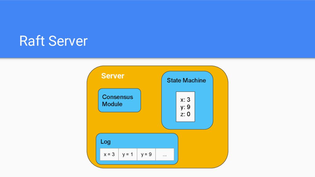 Raft Server Consensus Module State Machine x: 3 y: 9