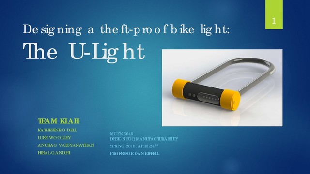 13 unique parts plus… 14 key lock parts Front Mount 4 unique parts Rear Light The U-Light/Lock 6 unique parts Rear Mount 6 unique parts plus… 5 shared with front light 5 Front Mount Front Light Rear Mount Rear Light