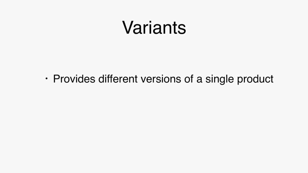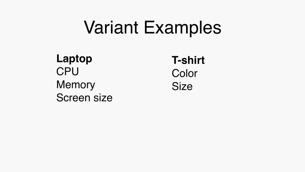 Variant Examples Laptop CPU Memory Screen size T-shirt Color Size