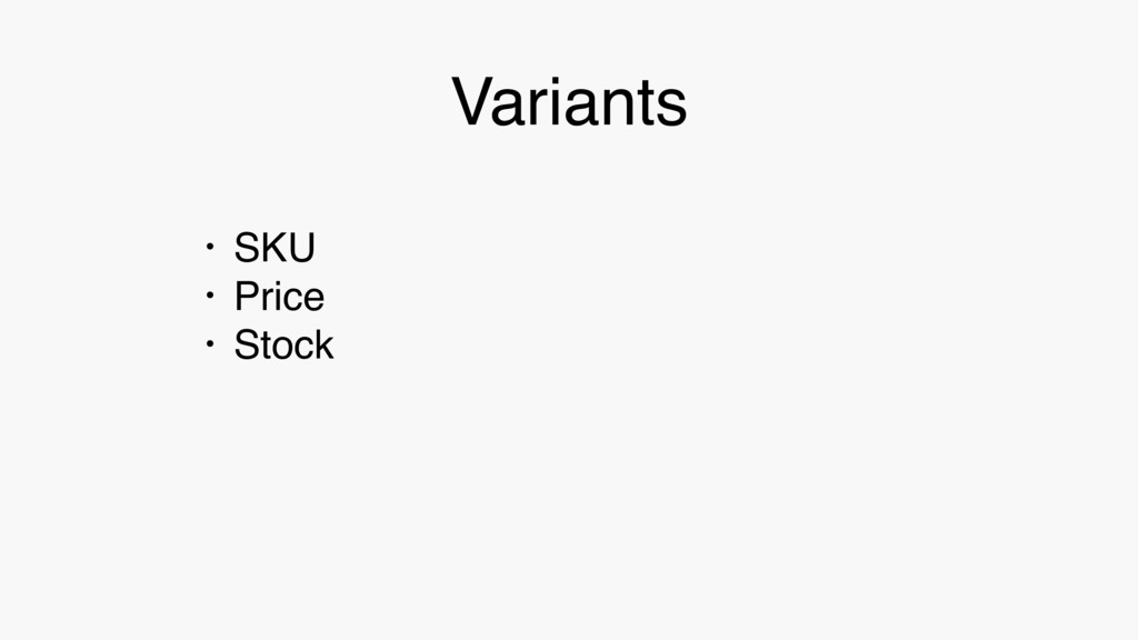 • Automatic SKU? • Dimensions? • Multiple variants? • Field layout(s) Product Types