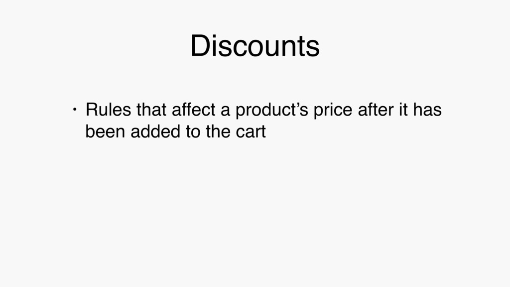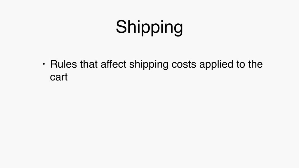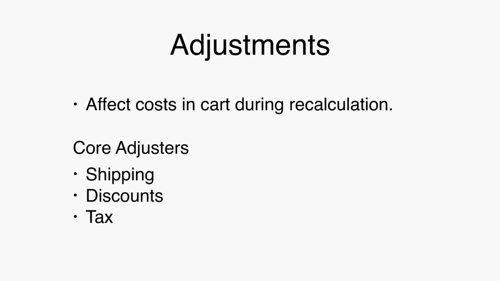 Adjustments • Affect costs in cart during recalculation. Core Adjusters