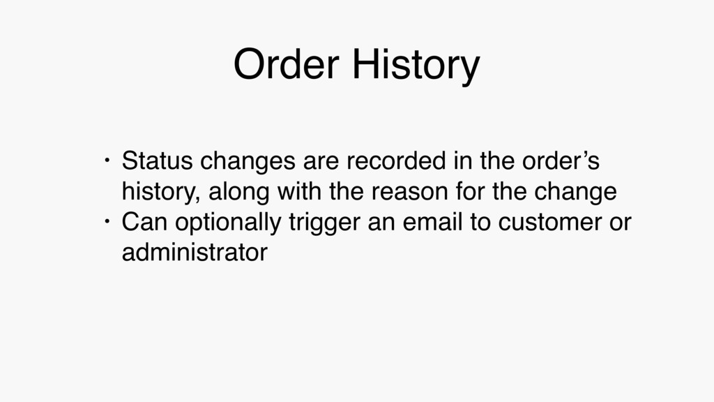 history, along with the reason for the change • Can optionally trigger an email to customer or administrator
