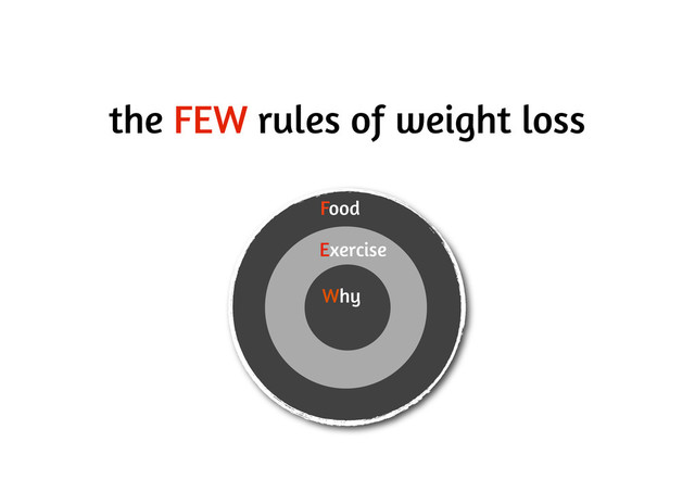Food, Exercise and Why, the most important being "Why". These are the rules of weight loss and explain why people fail to lose weight