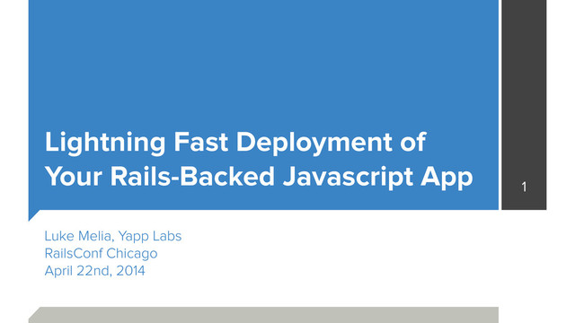 Are you restarting your Rails server every time you deploy JavaScript? Are you waiting 5 minutes or more to deploy static JavaScript? Stop! We were able to cut our JavaScript front-end deployment times from more than 5 minutes to less than 15 seconds with zero downtime. As a bonus, we can preview new releases on production before making them live. I will share all the details of an approach you can implement on your Rails-backed Javascript app to make deploying JavaScript updates a joy. Video: https://www.youtube.com/watch?v=QZVYP3cPcWQ